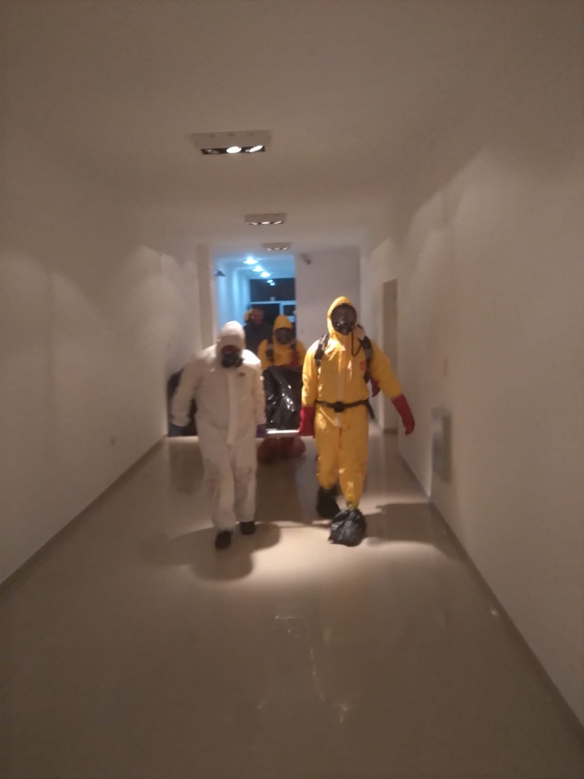 En horas de la noche Bomberos Voluntarios informaron sobre un rescate de un cuerpo en estado de descomposición desde un departamento en un tercer piso BV. España 550 una unidad de rescate urbano una unidad de logística y 16 efectivos.