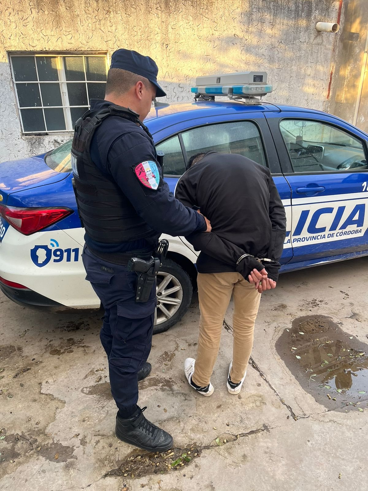 Con esta información, los efectivos realizaron un recorrido preventivo por el sector y, al llegar a la intersección de calles Brasil y Deán Funes, divisaron a un hombre cuyas características coincidían con las aportadas. Al advertir la presencia policial, el individuo arrojó un elemento hacia la fachada de una vivienda ubicada en Brasil al 1200.
