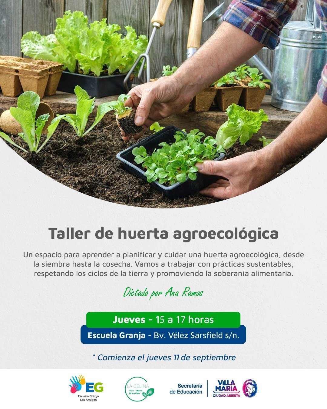 Taller de huerta agroecológica: Jueves, de 15 a 17 horas. Dictado por Ana Ramos. (Comienza el 11/9)