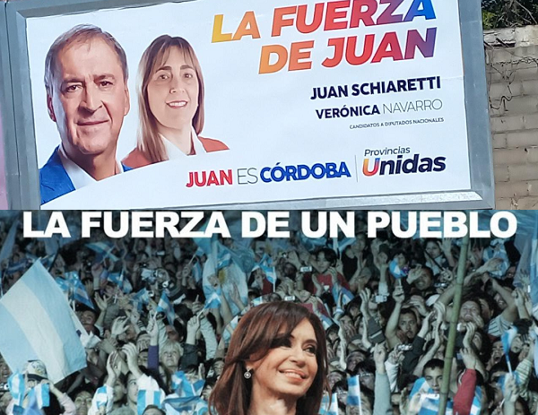 Juan Schiaretti, actual candidato a diputado nacional, salió a las calles con su consigna “La Fuerza de Juan”, acompañada por su tradicional estética sobria y el sello de “Provincias Unidas”. Sin embargo, la memoria política no tarda en activarse: en 2011, Cristina Fernández de Kirchner encaró su campaña presidencial con un eslogan muy similar: “La Fuerza de un Pueblo”.